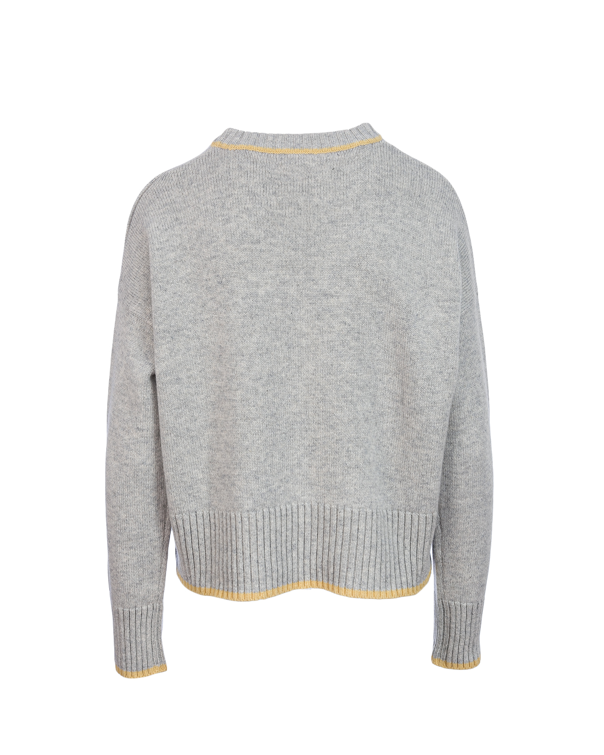 Designed to keep you cozy without compromising on style, this jumper transitions seamlessly from casual daytime looks to evening sophistication. The round neckline is tipped with a delicate contrast rib, sleeves flow straight from the bodice, creating that easy, slightly dropped look that sits beautifully on the shoulder and layers without bulk. A deep rib at the hem gives gentle structure and movement, finished with a neat contrast edge that’s echoed at the cuffs for a quiet pop of colour.