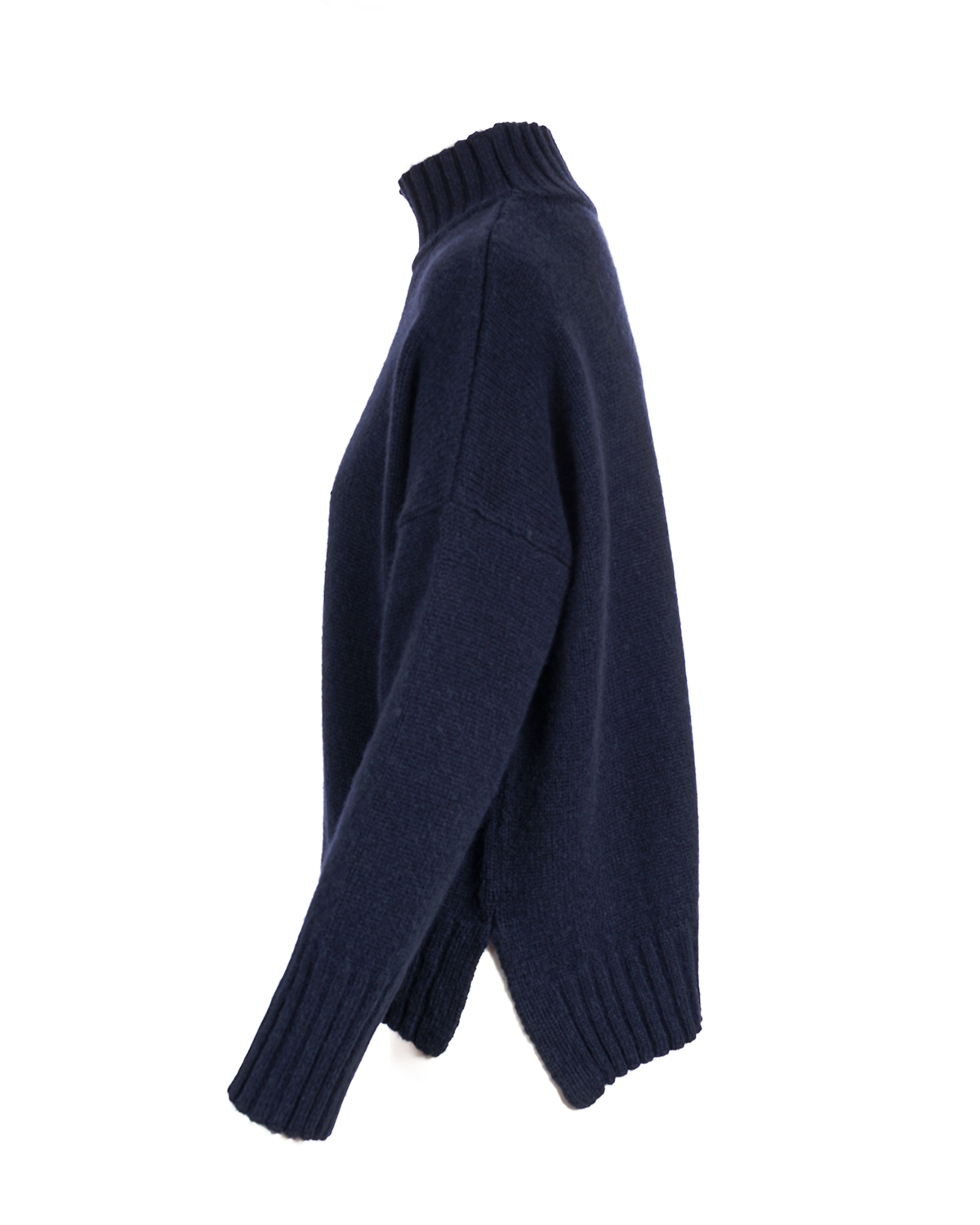 Cashmere Mix Longer Back Funnel Neck Jumper – Navy