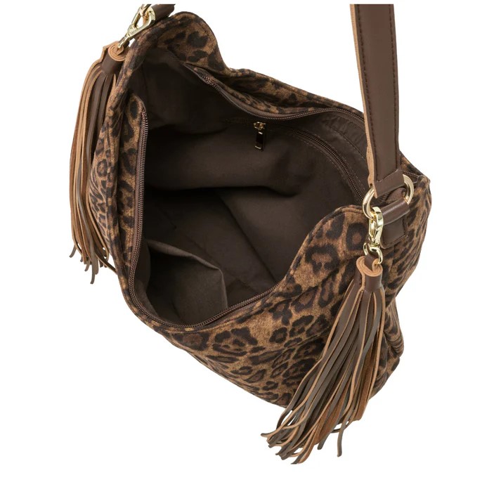 A relaxed silhouette, soft suede-look PU, and playful tassels give this shoulder bag a summer-ready feel. Gold-tone hardware adds a subtle touch of luxury, while the zip top closure keeps your essentials secure.