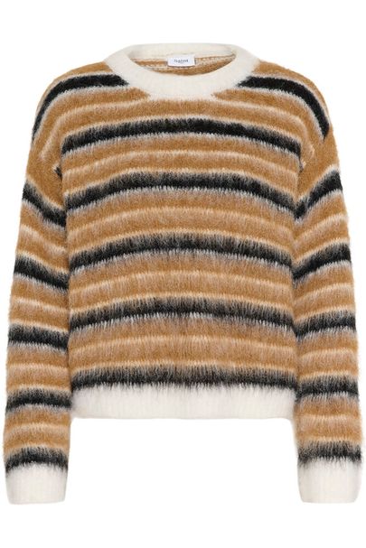 Designed to keep you cozy without compromising on style, this jumper transitions seamlessly from casual daytime looks to evening sophistication. The round neckline is tipped with a delicate contrast rib, sleeves flow straight from the bodice, creating that easy, slightly dropped look that sits beautifully on the shoulder and layers without bulk. A deep rib at the hem gives gentle structure and movement, finished with a neat contrast edge that’s echoed at the cuffs for a quiet pop of colour.
