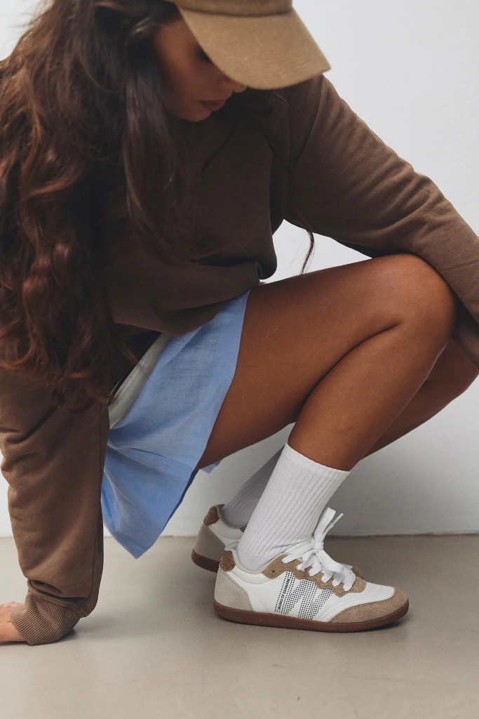 Nanna is the ultimate travel-friendly sneaker—ultralight, flexible, and designed to move with you. Thanks to its soft construction, Nanna can twist and curl to fit easily into any suitcase or bag. Crafted from LWG-certified suede and textile, and finished with WODEN Natural Soft Technology™, it offers elevated comfort in a sleek, packable silhouette. A lightweight essential for life on the go.